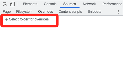 打开这个网站,打开浏览器的控制台,选择Sources的tab,然后点击 Overrides子选项卡,点击上面的 + select floder for overrides :