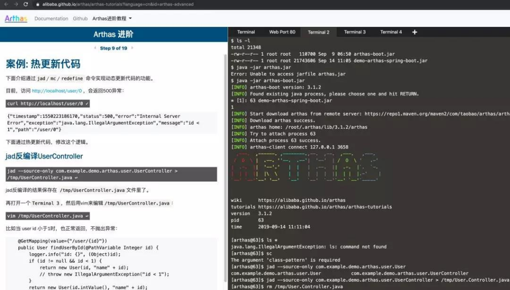 首先可以跟着教程来一次尝试 https://alibaba.github.io/arthas/arthas-tutorials?language=cn&id=arthas-advanced