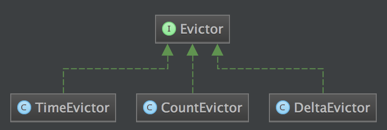 当Trigger fire了,窗口中的元素集合就会交给Evictor(如果指定了的话)。Evictor 主要用来遍历窗口中的元素列表,并决定最先进入窗口的多少个元素需要被移除。剩余的元素会交给用户指定的函数进行窗口的计算。如果没有 Evictor 的话,窗口中的所有元素会一起交给函数进行计算。