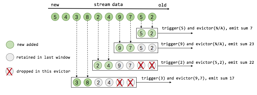 .evictor(CountEvictor.of(size))  // evictor is window size