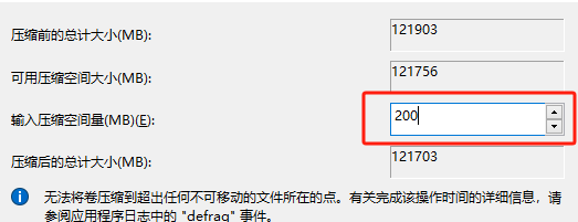 我们打开操作系统自带的磁盘管理软件(我的电脑点右键-计算机管理-磁盘管理),对着C盘点右键,再点击压缩卷,压缩空间量我们选择200M就够了。