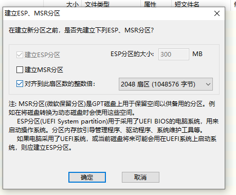 我们帮MSR去掉,只创建ESP就行了。