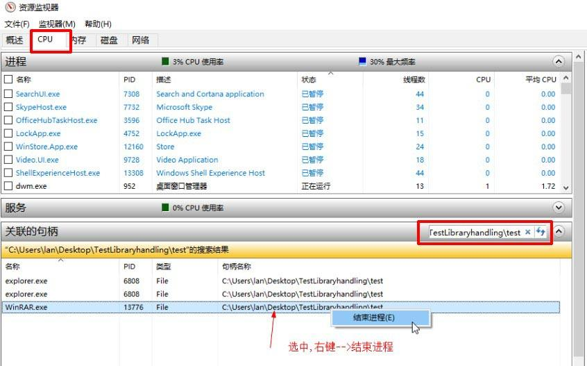 接着下面的搜索结果列表中,会看到正在使用该文件夹的程序 ;