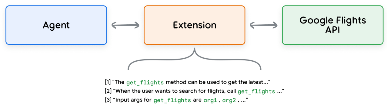 - Extensions 为 Agent 与外部 API 之间提供了一个桥梁,使 Agent 能完成实时 API 调用和实时信息检索。